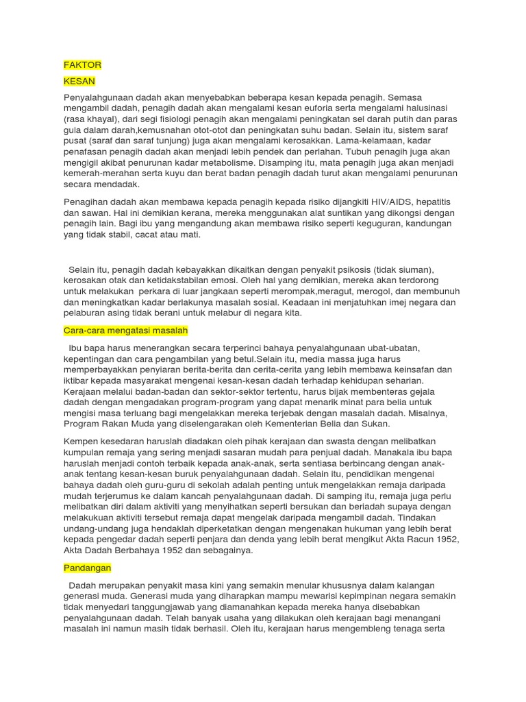 Doc analisis faktor penyalahgunaan dadah dan langkah mengatasi dari segi kognisi di pusat pengasih malaysia nurul hatika bt ithnin suri aimi amalina bt abu hanapah. Mengasingkan diri dari murid lain. Ia diikuti dadah jenis heroin sebanyak 23 3 peratus. Karangan cara cara mengatasi masalah penyalahgunaan dadah punca penyalahgunaan kesan dan punca penyalahgunaan dadah doc analisis faktor penyalahgunaan dadah dan langkah mengatasi dari segi kognisi di pusat pengasih malaysia nurul hatika bt ithnin suri aimi amalina bt abu hanapah norhidayu bt juhari sharifah shafiqah bt wan penyalahgunaan dadah. Setiap tahun,jumlah penagih dadah semakin meningkat terutama sekali dalam.